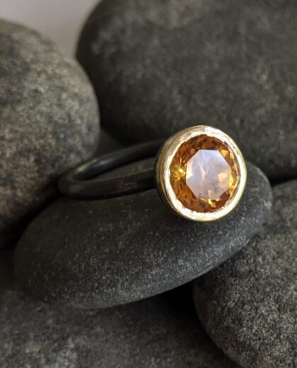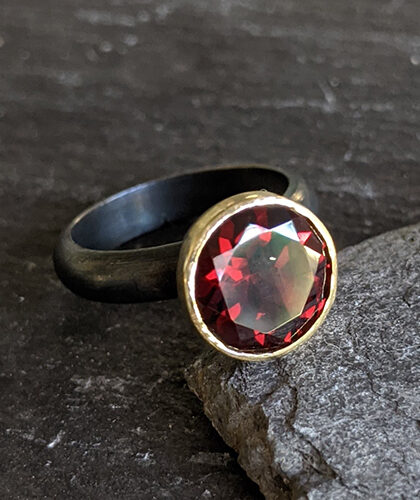sterling silver and 18ct gold with 10mm almadine garnet.