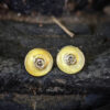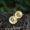 These beautiful studs are created from textured and hand formed 18ct yellow gold and set with sparkling champagne diamonds.