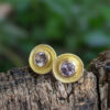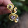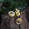These beautiful earrings, are created from textured and hand formed 18ct yellow gold, and grey spinel. They can be worn as simple studs or opulent drops.