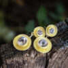 18ct yellow gold, 6.5mm and 4mm grey spinel, 13mm and 9mm cups.