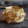 This stunning ring is crafted from textured 18ct gold wire and set with 11 round brilliant cut diamonds, a serious show stopper.