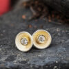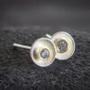 Reticulated silver formed cups with a small round brilliant cut diamonds collet set in beautiful warm 18ct gold, these studs are beautifully elegant and simple.