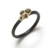 Hammered and black rhodium plated silver wire, set with 4 black diamonds in 18ct gold, simple yet striking