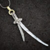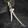 sterling silver and 18ct gold, 45cm long chain, 70mm drop.