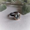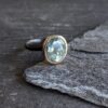This beautiful ring, created from oxidised  hand formed silver, has a stunning pale green amethyst set in an 18ct gold gum nut setting .