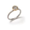 18ct white gold, 18ct yellow gold, 6.3mm salt and pepper diamond and 0.09ct diamonds. 2mm band, 4mm high settings.