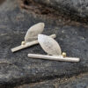 Silver textured leaves and 18ct gold detailing, assembled on textured silver wire, these studs are beautifully elegant and simple.