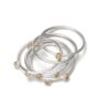 Formed silver cups which hold individual round brilliant cut diamonds, are set on plain wire bands, and can be worn in a variety of combinations.