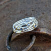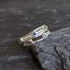 sterling silver wire, 18ct gold and 5 2mm Ceylon sapphire 8mm wide x 1.8mm thick.