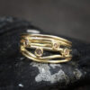 This beautiful ring is crafted from textured 18ct gold wire and set with 5 warm champagne diamonds.