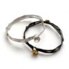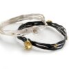 Hammered and textured silver wire is wrapped and woven before being set with 8 gold centered acorn cups, these bracelets are beautifully simple and elegant.