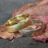 This beautifully elegant ring is hand formed from textured 18ct gold, these bands have been designed to be comfortable and wearable. I can texture these bands heavily or lightly, please just let me know your preference